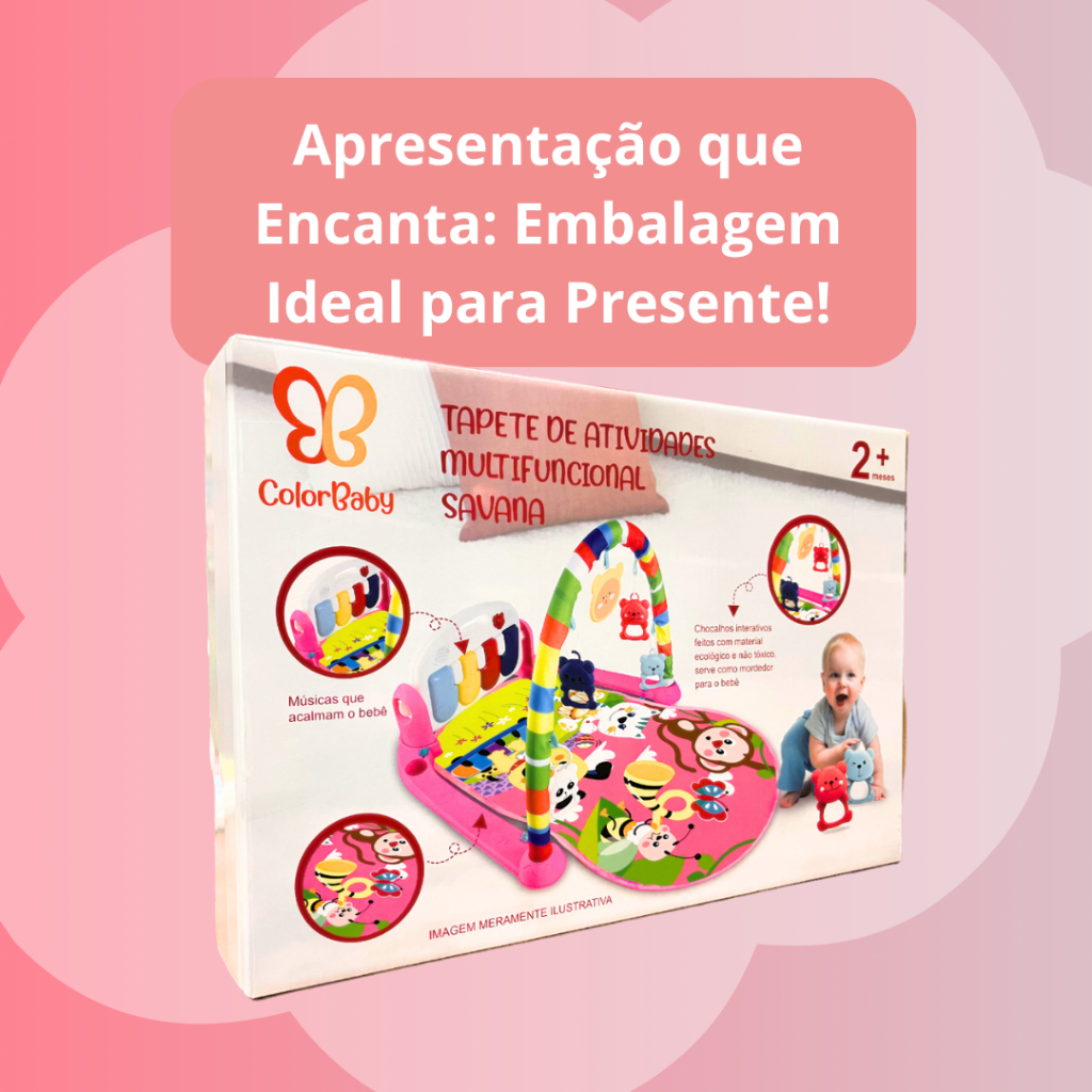 Invista no desenvolvimento do seu bebê em um mundo de descobertas sensoriais com o Tapete de Atividades Musicais da ColorBaby! Este tapete é mais do que um lugar para brincar, é uma ferramenta educativa que estimula os sentidos e desenvolve habilidades essenciais desde o nascimento até os 18 meses de idade. Equipado com brinquedos coloridos, um piano multifuncional e móbiles interativos, ele promove o desenvolvimento visual, auditivo e motor, fortalecendo os músculos do bebê enquanto oferece uma experiência interativa e lúdica.